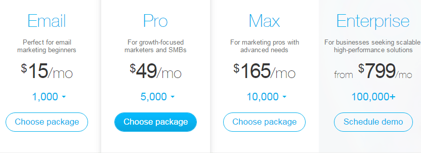 GetResponse have different pricing for different business goals which is affordable for every user. For startup level you can choose $15 per month package, in which you can send emails to 1000 subscribers. You can change your package according to your business need. If you want enterprise package for high performance, go with $799 per month package, in which you can send emails to 100000 subscribers in order to expand your business.