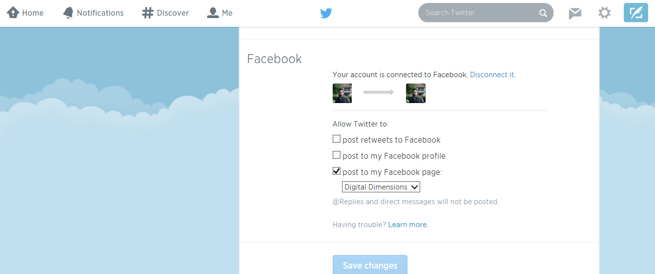 Similarly, you can also opt to choose your Facebook page instead of your personal profile to link with Twitter.