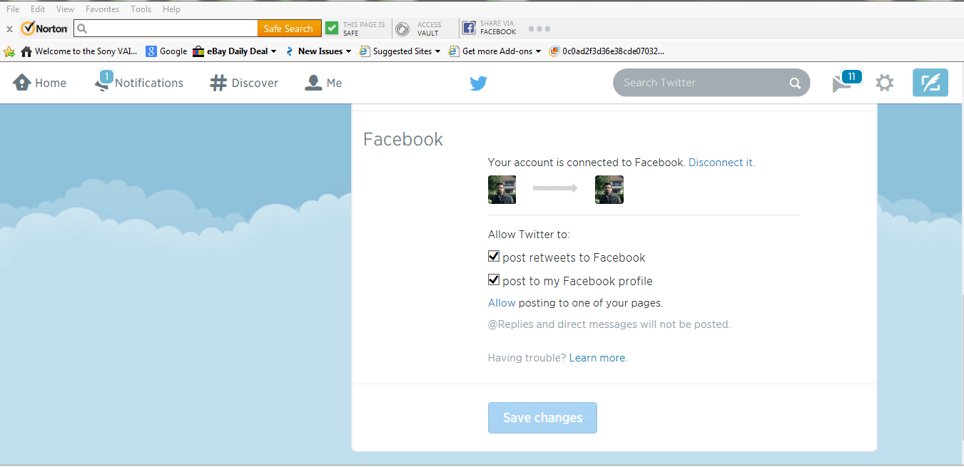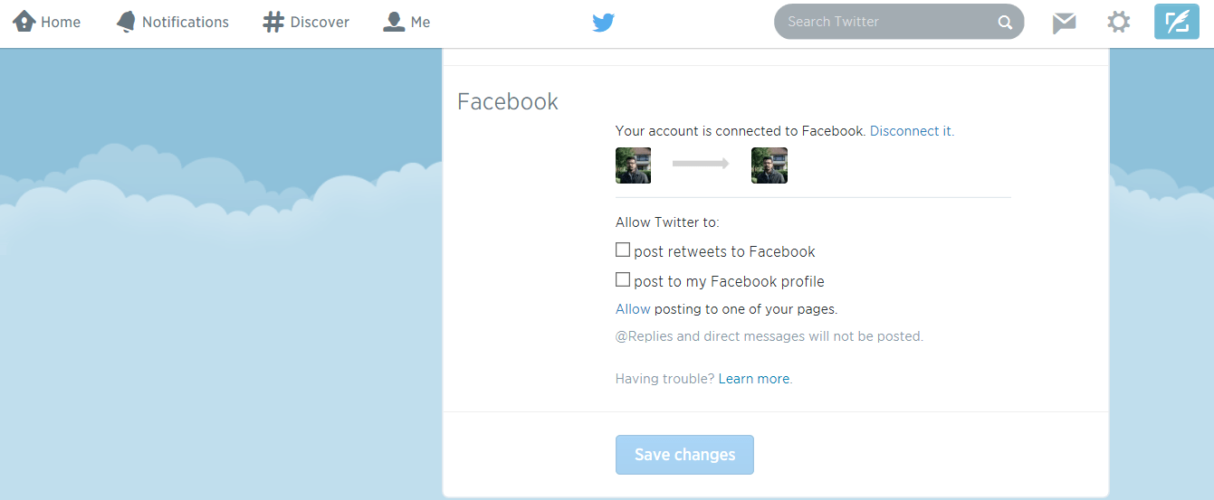 Once you enter your Twitter username and password, you have the following page where you can choose the options to link to Twitter. Click “Save”after choosing your option.