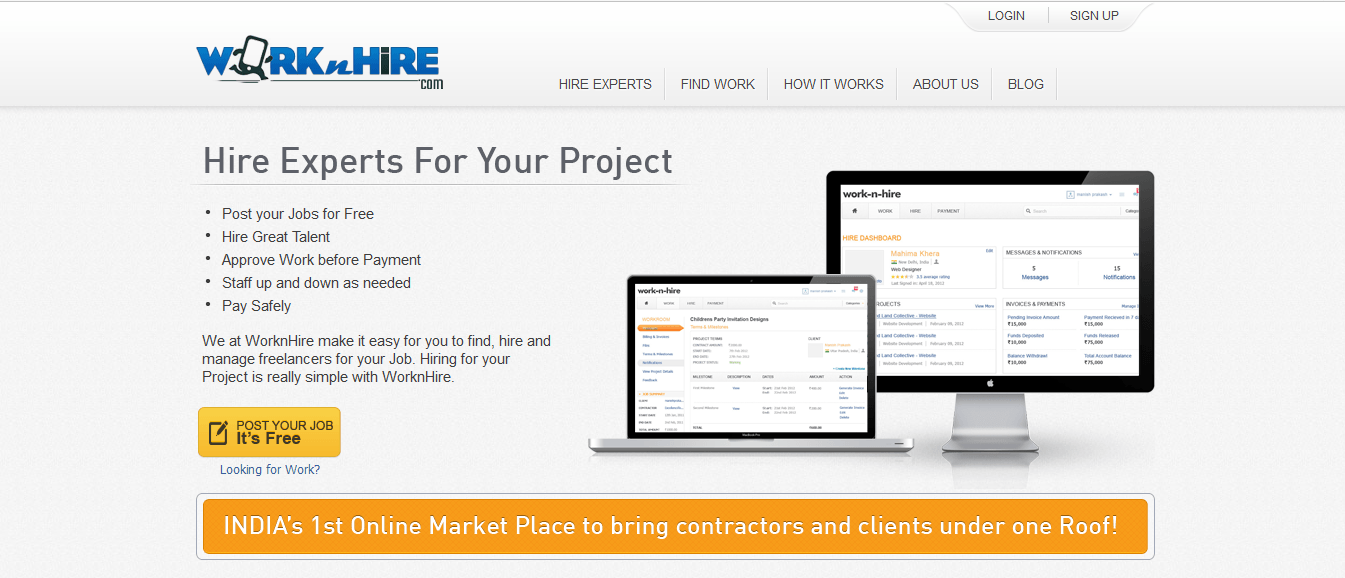 “Work N Hire” is one of the platforms where you can find your preferred freelancing jobs, from any field you belong. Whether you are a writer, or designer, or a developer, the site lists all the jobs that require people with various skills from various industries. You can browse for jobs on the site based on your industry type and find the list of projects where they require freelancers. Based on your knowledge and agreements with the project you can send a proposal for the job and the employer will get in touch with you. “Work N Hire” is probably one of the most reliable sites I have come across where you can find clients from within the country and outside too.